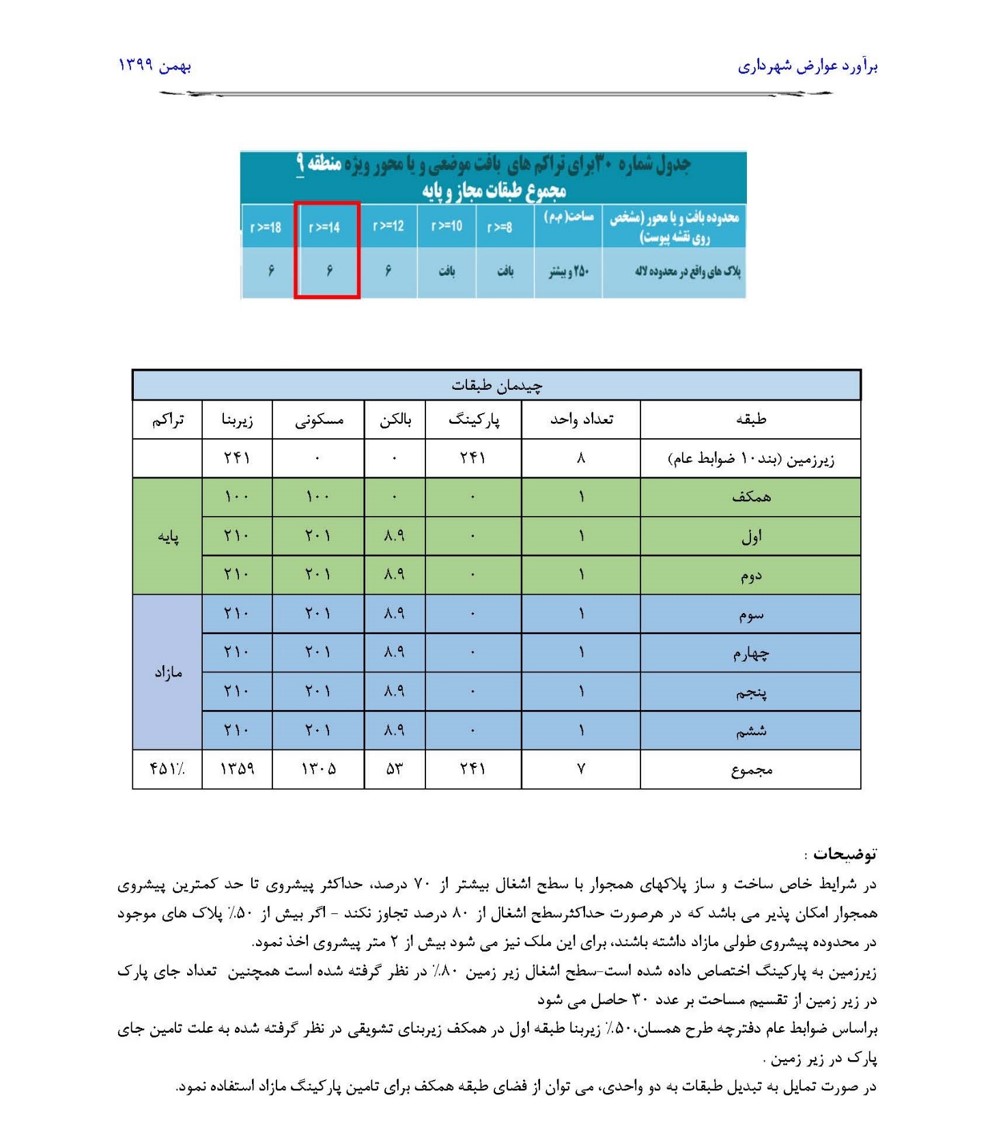 - زیربنای مورد درخواست برای پروانه احداث بنا یا زیربنای احداث شده برای اخذ پایانکار به تفکیک هر طبقه (زیربنای زیرزمین، بالکن (پیش آمدگی در معبر)، پیشروی در حیاط، تعداد واحد مسکونی، … نیز اعلام گردد).