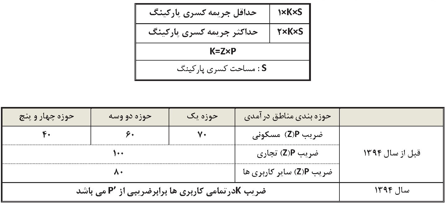کسری پارکینگ مطابق فرمول زیر محاسبه می شود (در سال 1398)