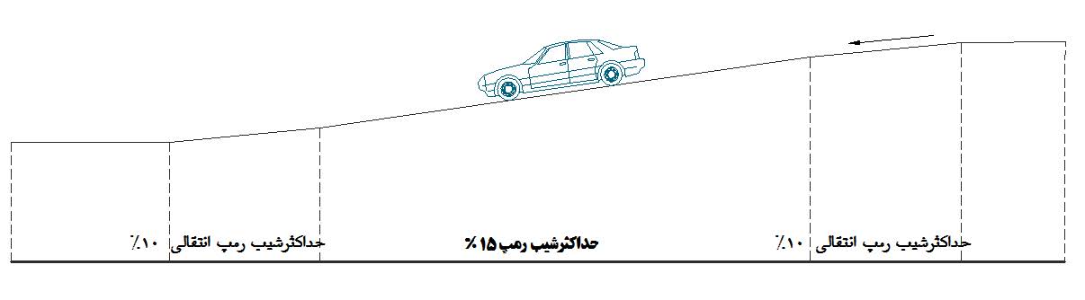 شیب رمپ پارکینگ در کاربری مسکونی؛ تجاری و یا هر کاربری دیگر شیب رمپ طبق ضابطه بین 15% تا 17% بیشتر نباشد.