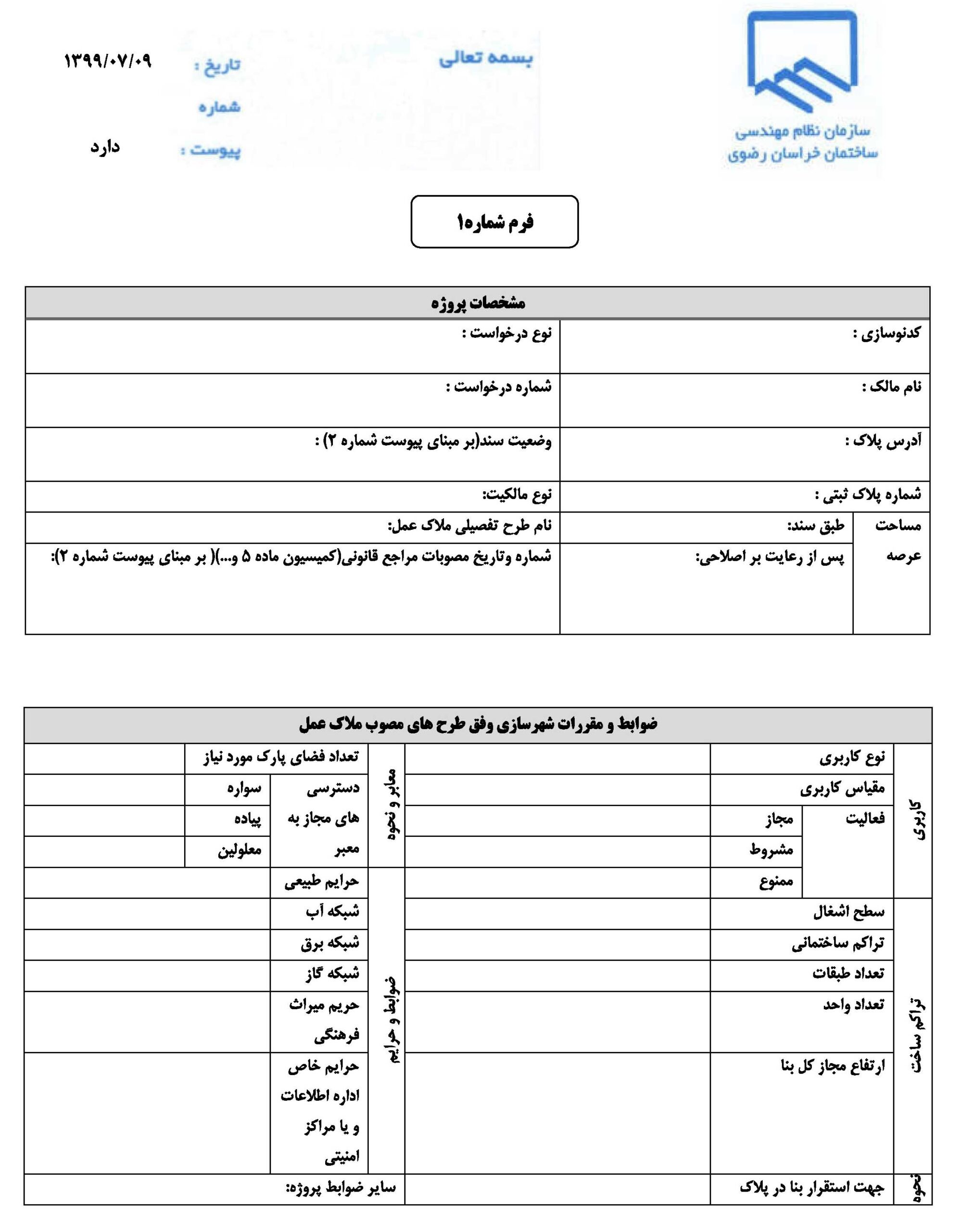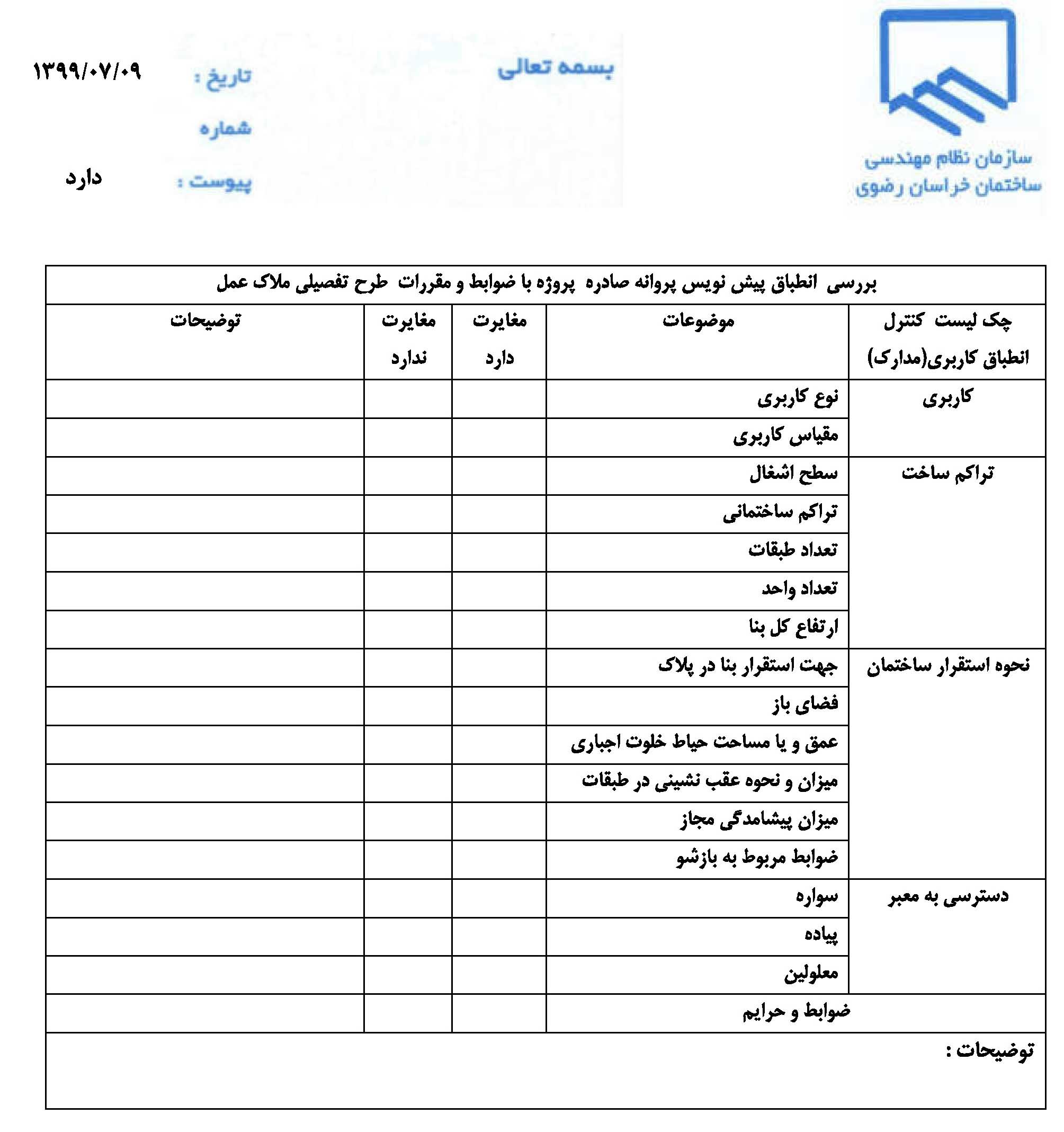 چک لیست طرح انطباق شهری ساختمان (مرداد 1402)