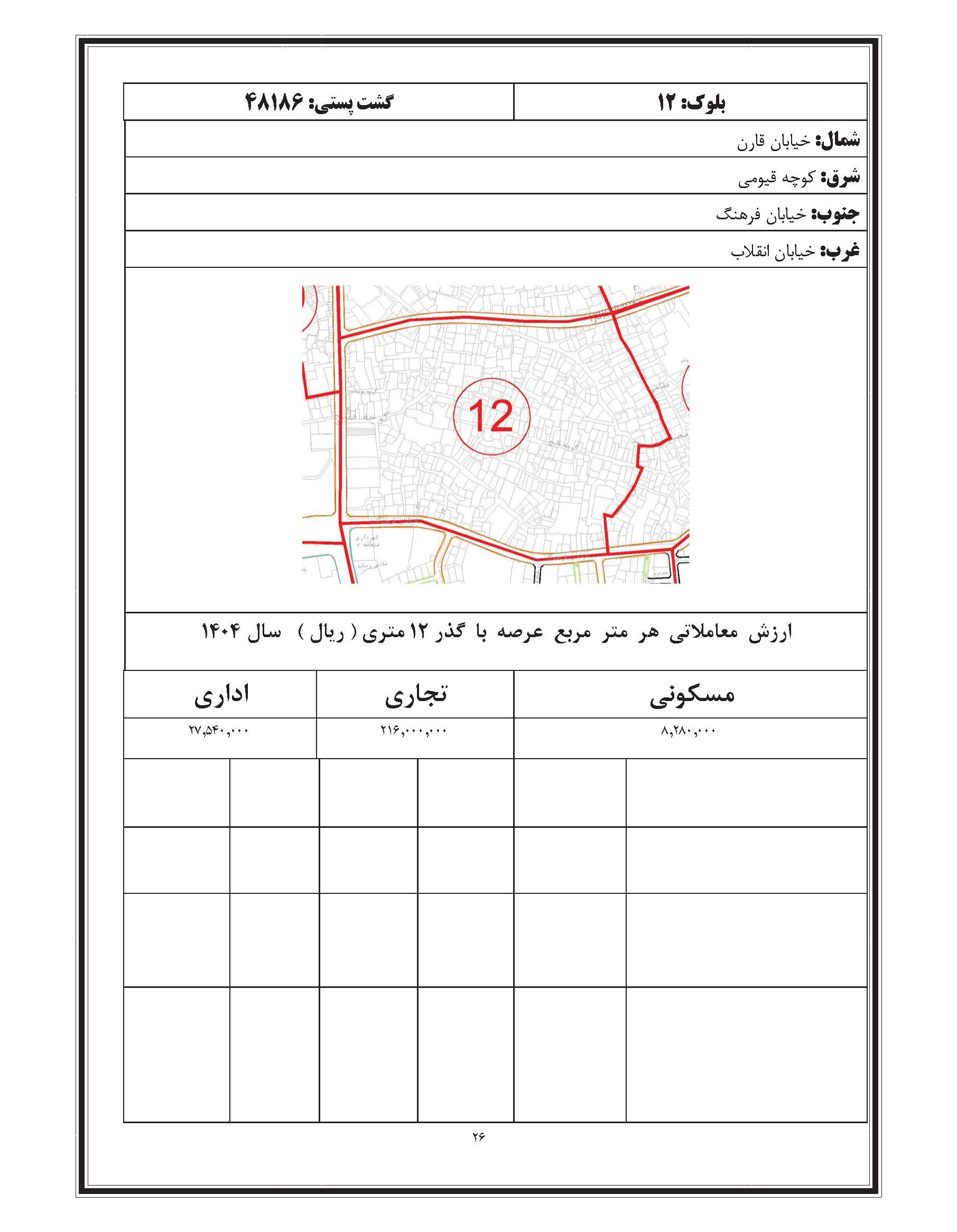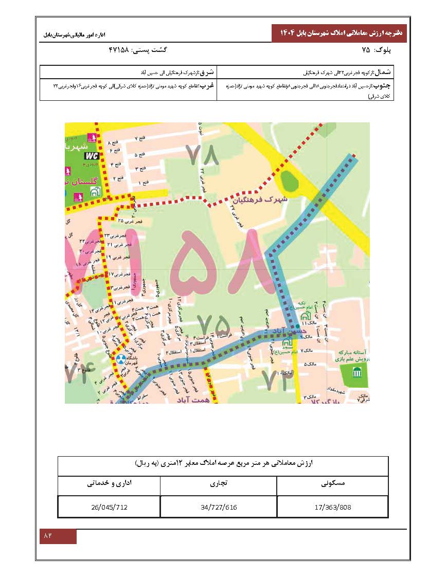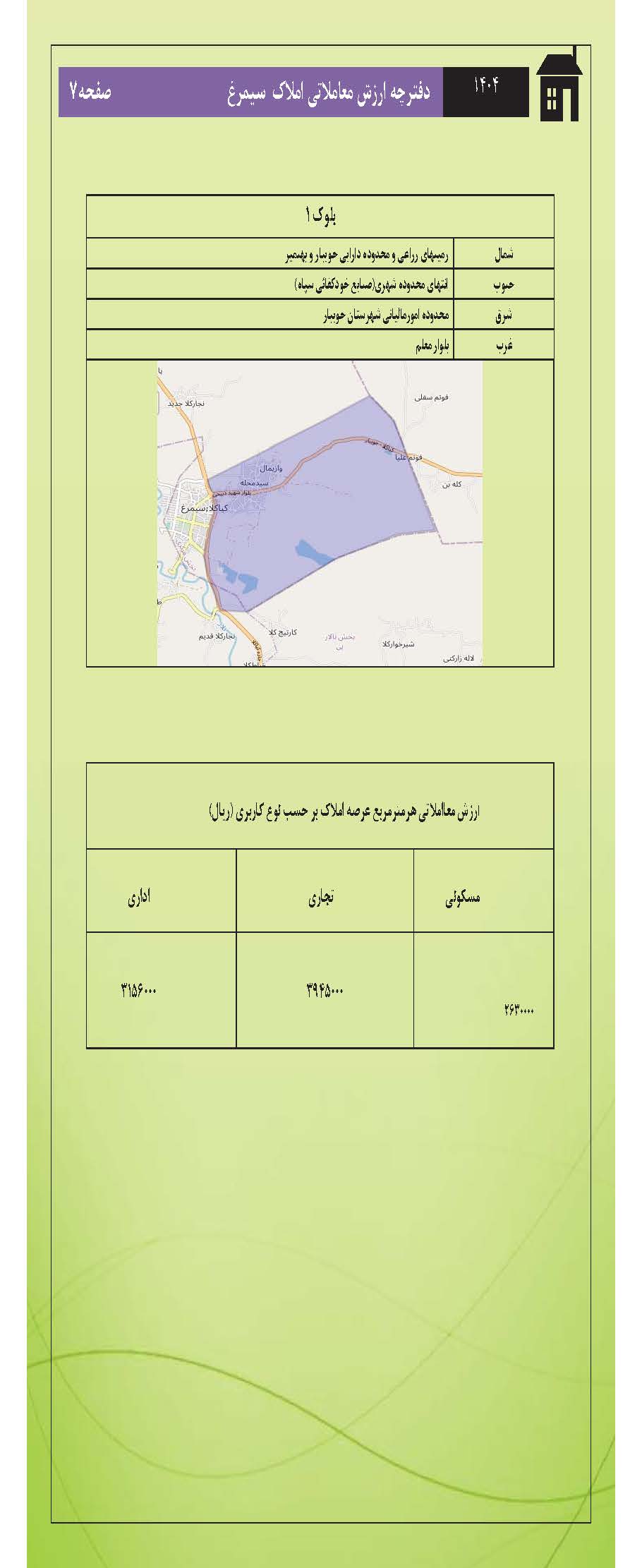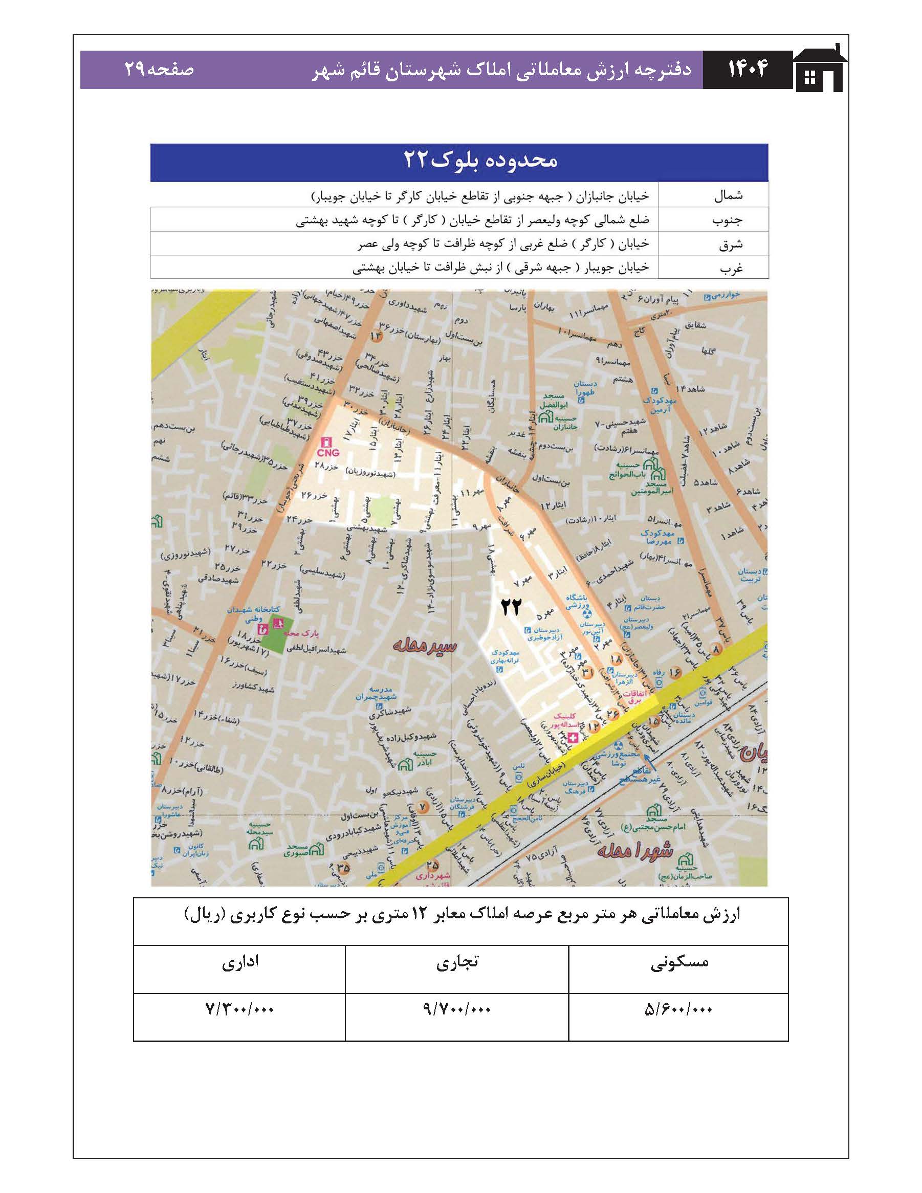 در اینجا فایل کامل دفترچه ارزش معاملاتی سال 1404 (مصوب 1403) املاک شهرهای استان مازندران شامل شهرهای ارطه/ امیر کلا/ آمل/بابل/ بابلسر/بهشهر/تنکابن/جویبار/چالوس/رامسر/زیراب و پل سفید/ ساری/ سواد کوه شمالی/سیمرغ/ فریدونکنار/ قائم شهر/ کلاردشت/ گلوگاه / محمود و آباد سرخ رود/ مرزن آباد / نکا / نور/ نوشهر